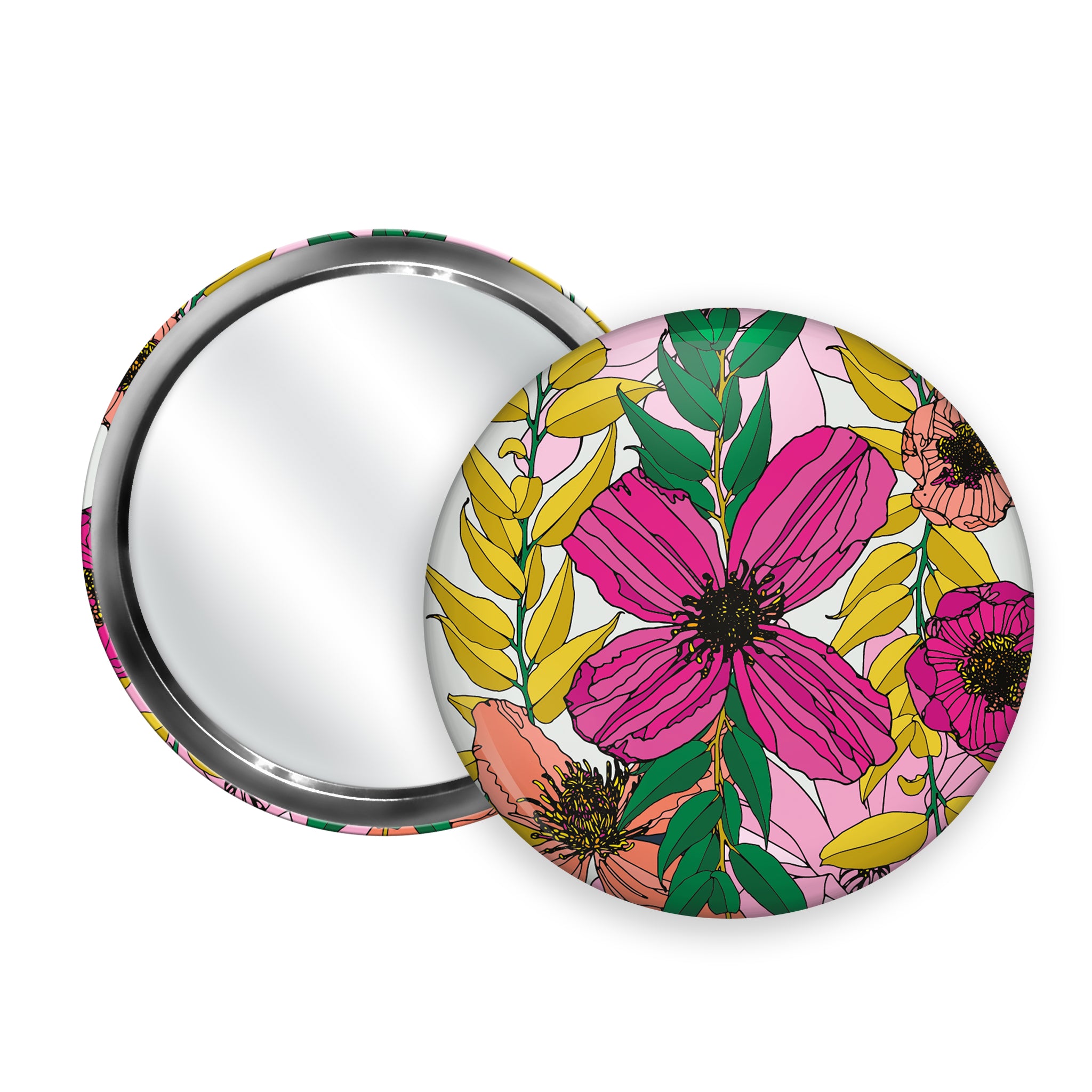 Discover our stylish Handbag Mirrors, the perfect small gift or stocking filler. Compact and practical, these mirrors feature vibrant floral and botanical designs and now come with a colourful cotton pouch. Ideal as table gifts, party favours, or to match with our makeup bags, they add a touch of elegance to any handbag.