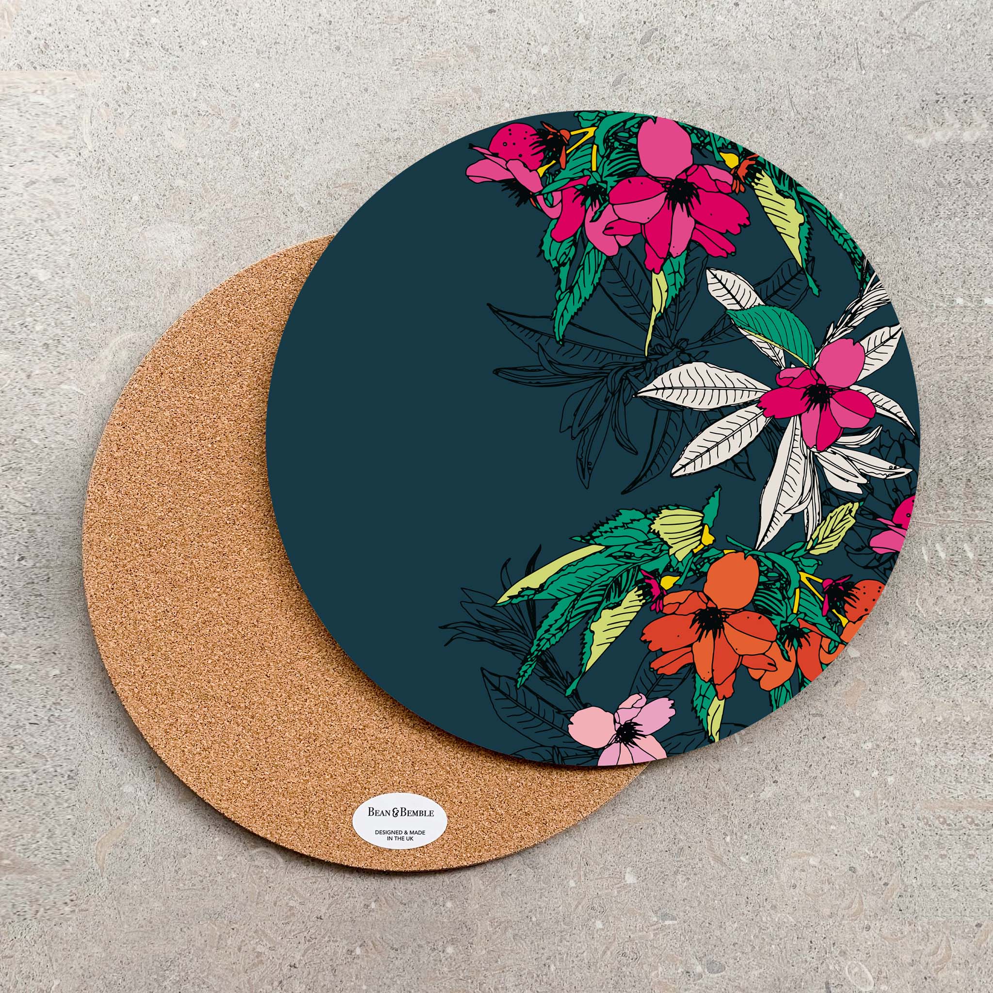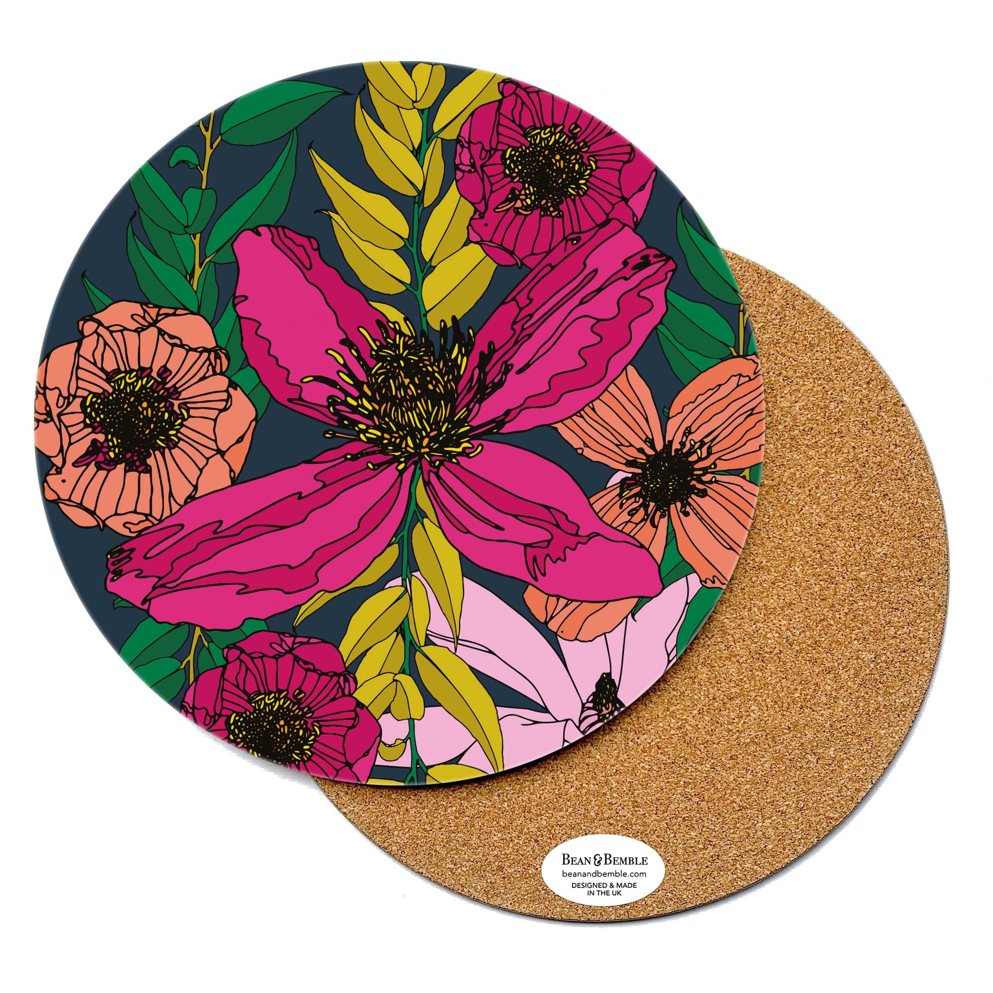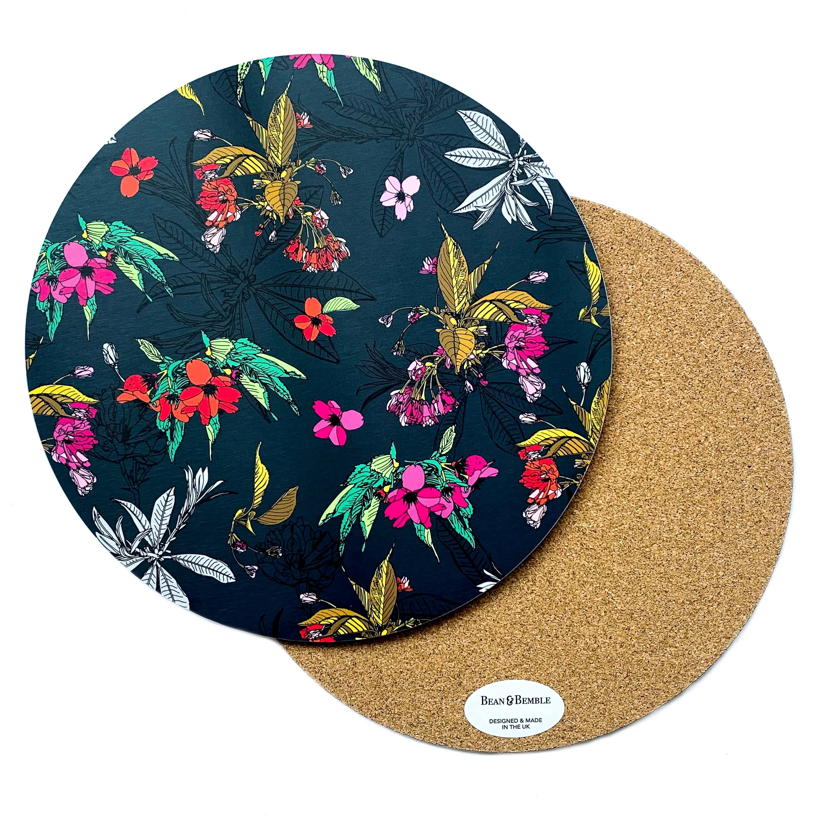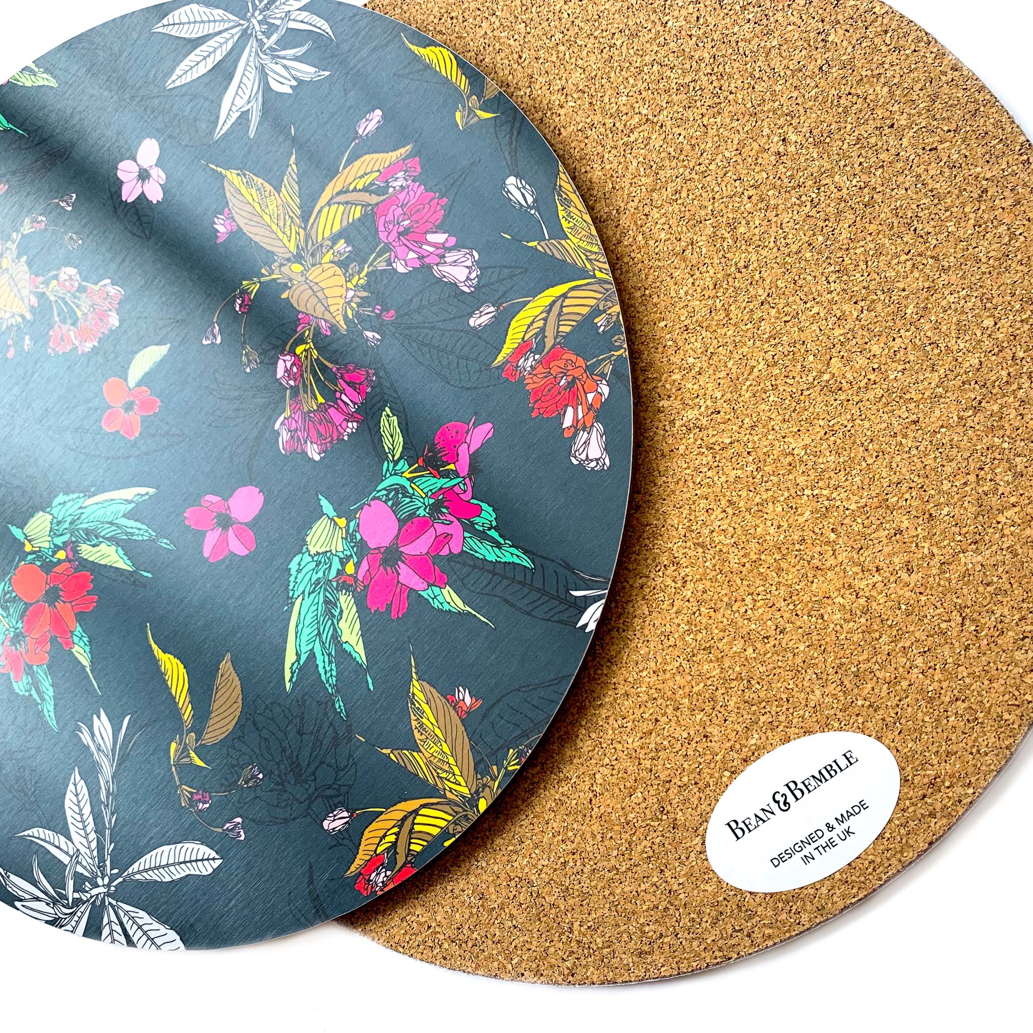 Bean and Bemble’s placemat collection brings vibrant style and practicality to your table. Choose from round or rectangular placemats, all handcrafted in the UK with striking, contemporary designs. Made with a heatproof, stain-resistant baked melamine surface and a sustainable eucalyptus core, these durable placemats protect your surfaces while adding a bold, colourful touch.