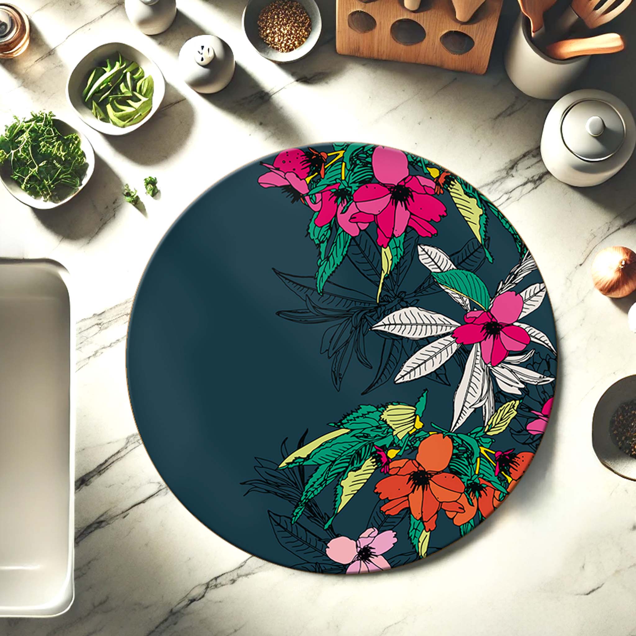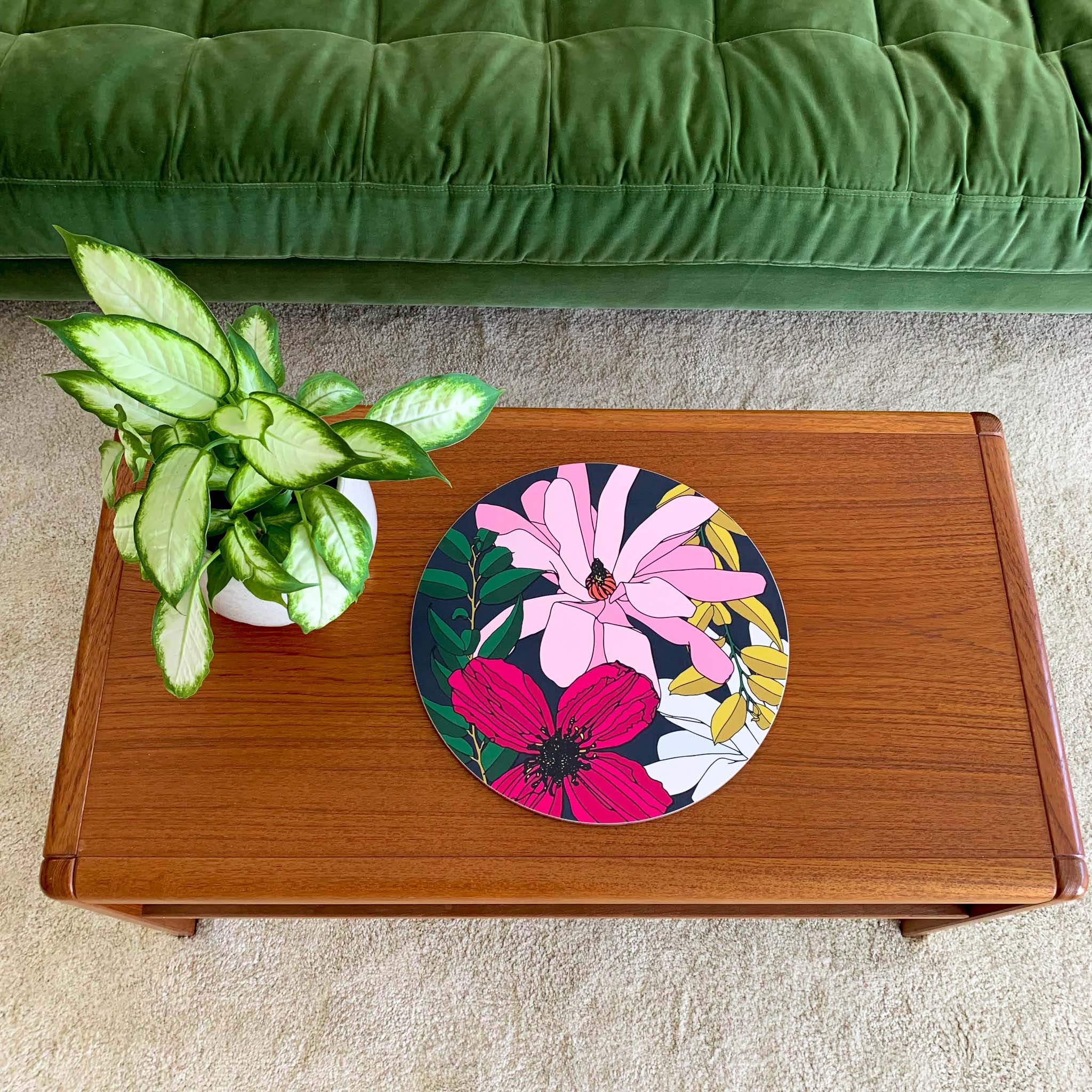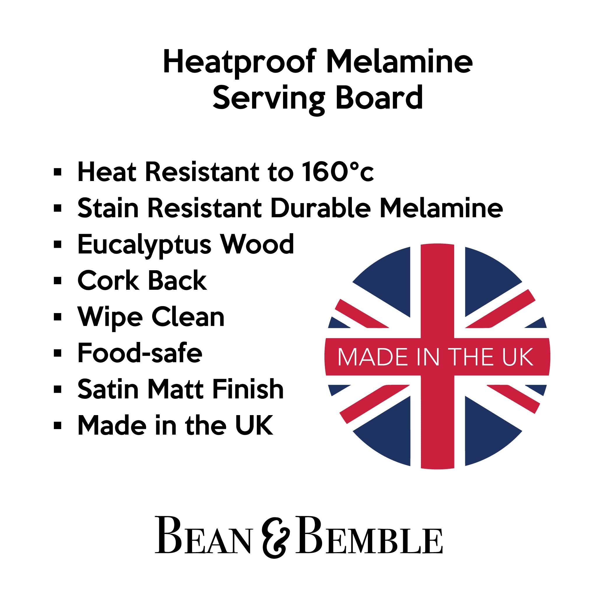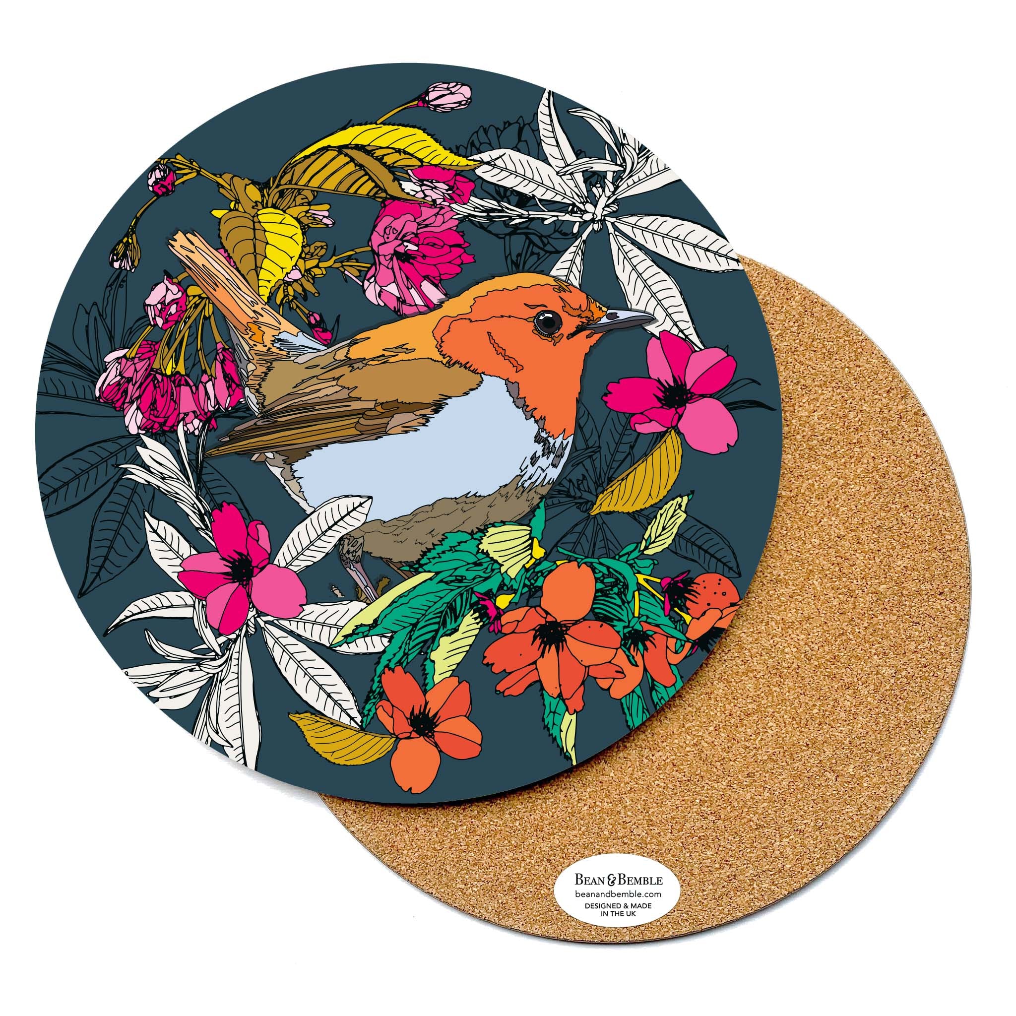 Bean and Bemble’s placemat collection brings vibrant style and practicality to your table. Choose from round or rectangular placemats, all handcrafted in the UK with striking, contemporary designs. Made with a heatproof, stain-resistant baked melamine surface and a sustainable eucalyptus core, these durable placemats protect your surfaces while adding a bold, colourful touch.
