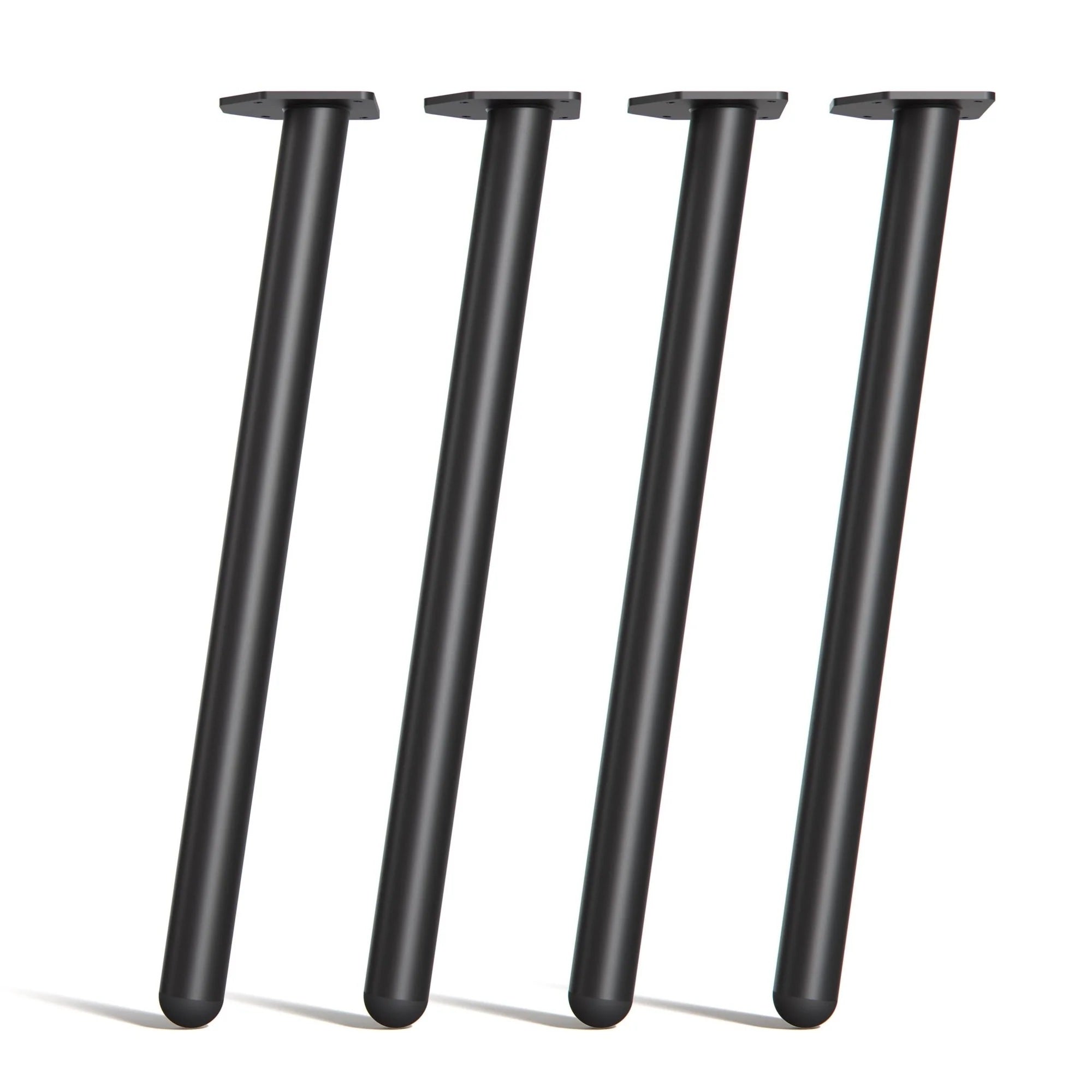 Our Single Pin Round Legs combine mid-century Danish design with modern durability. Featuring a distinctive 8-degree taper, these 50mm diameter steel legs evoke the elegance of 1960s Scandinavian style. Capable of supporting tops up to 120kg, they're ideal for desks, dining tables, or benches. Finished in three durable powder-coated colours and equipped with plastic feet for floor protection, they're easy to install with 6mm mounting plates. Pair with wood or ply tops for a refined, timeless look.