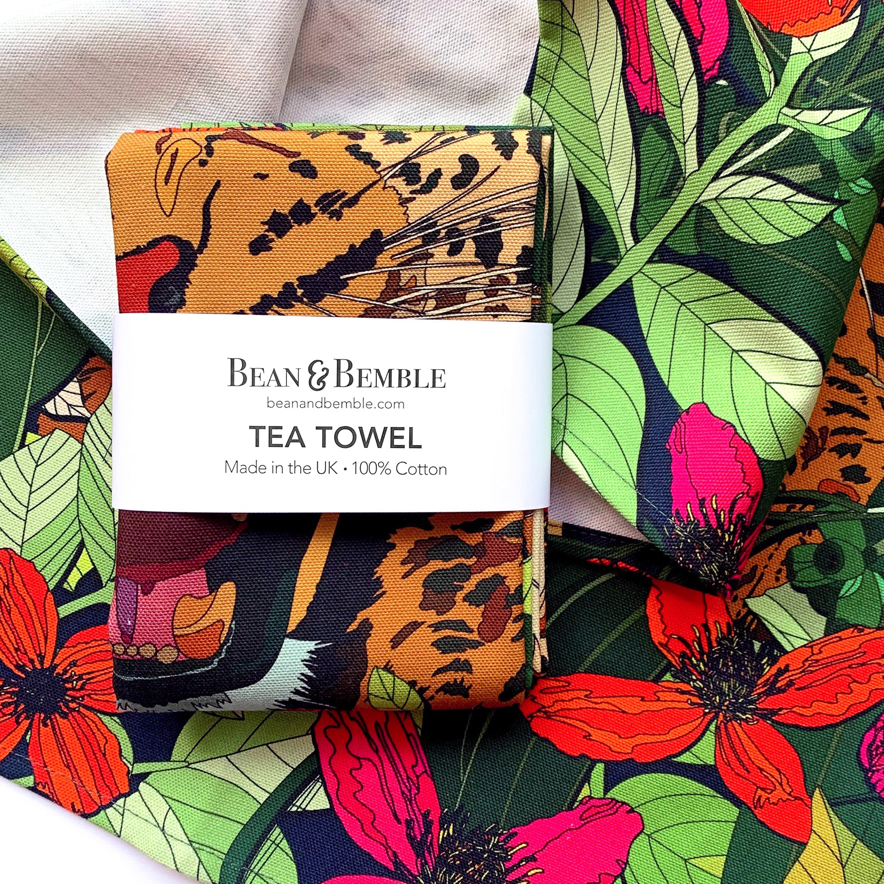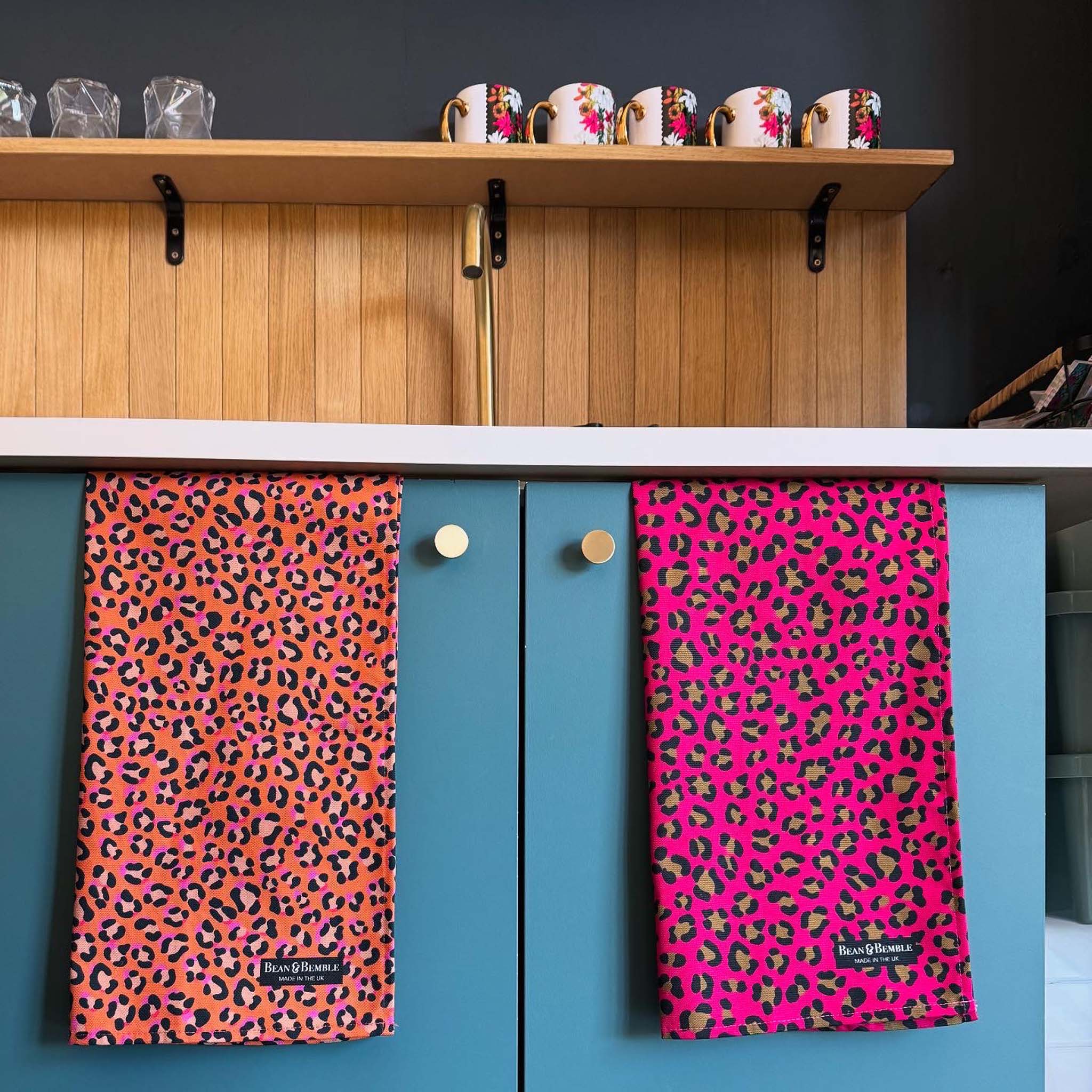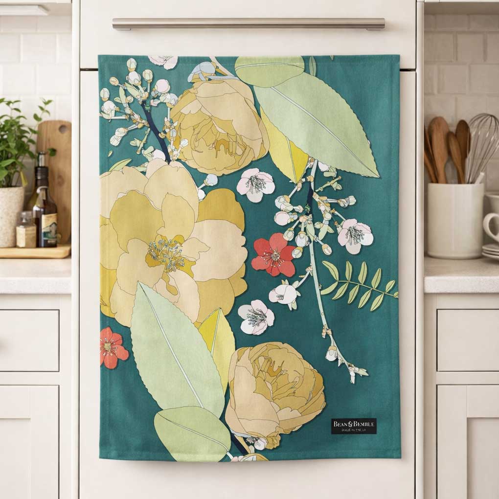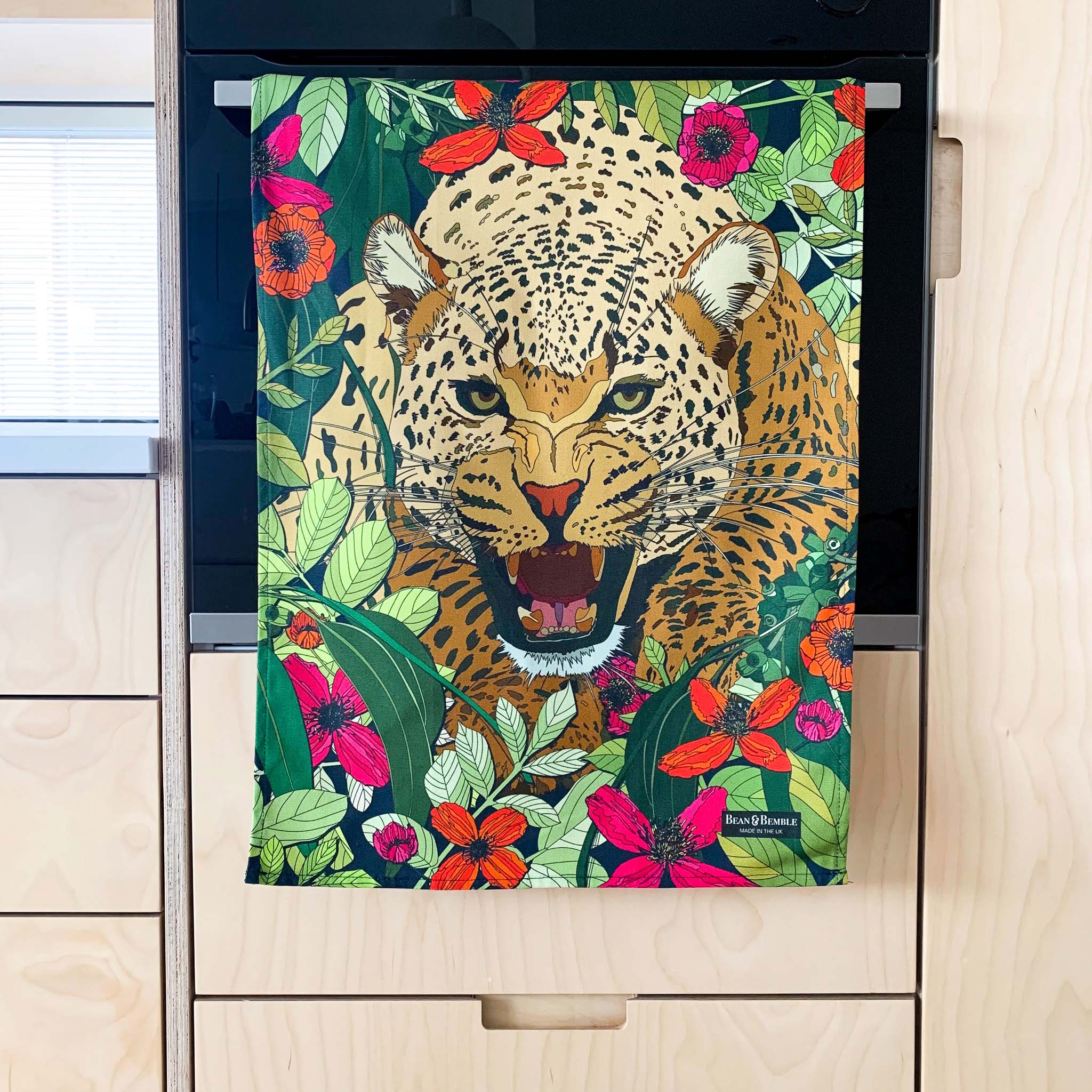 Brighten your kitchen with our decorative tea towels, featuring vibrant florals, bold leopard prints, destination designs, animals and more. Handmade in the UK from premium 300g organic half panama cotton, these luxurious tea towels combine style with practicality. Super absorbent and perfect for handling spills, they add colour and personality to your cooking space while offering exceptional quality and craftsmanship.