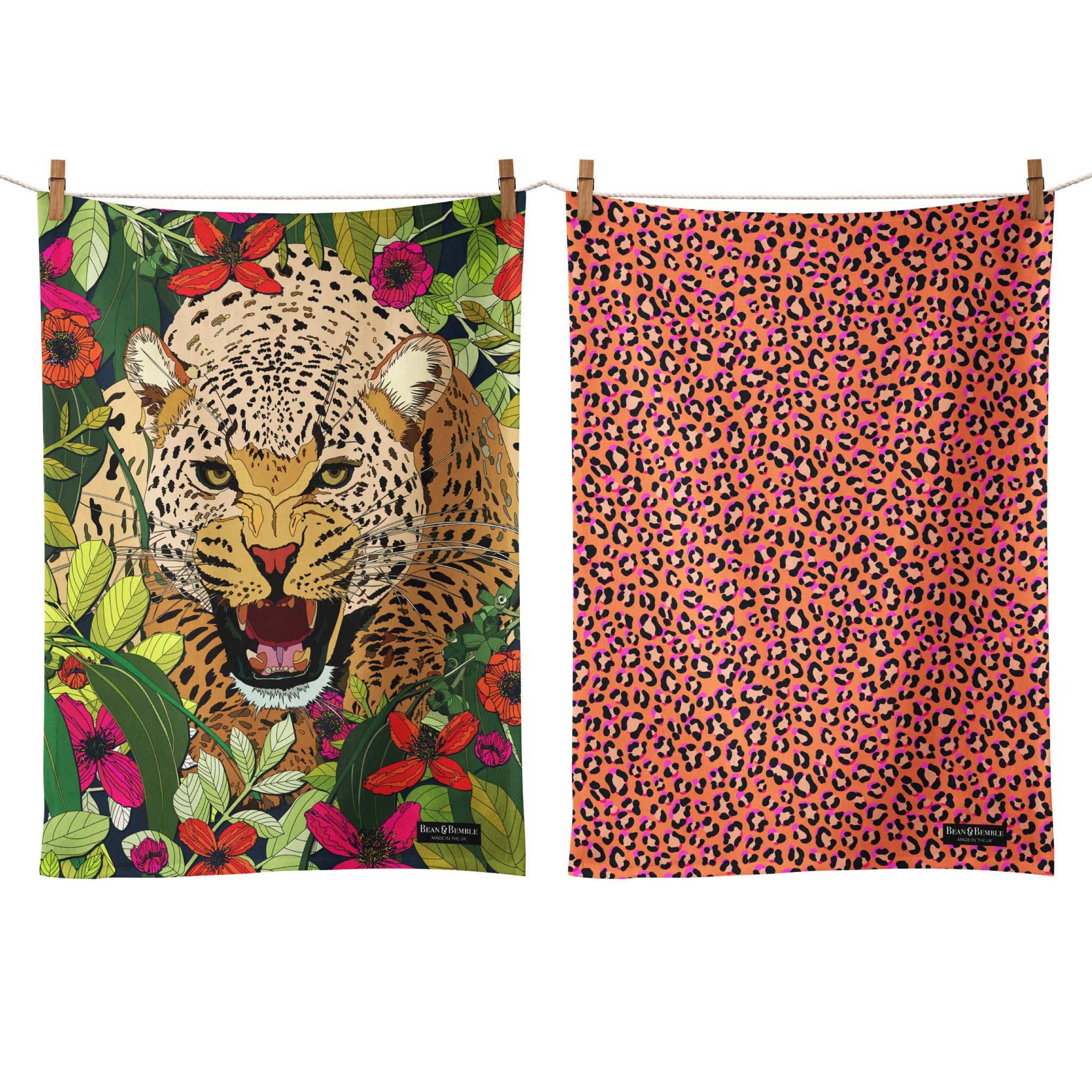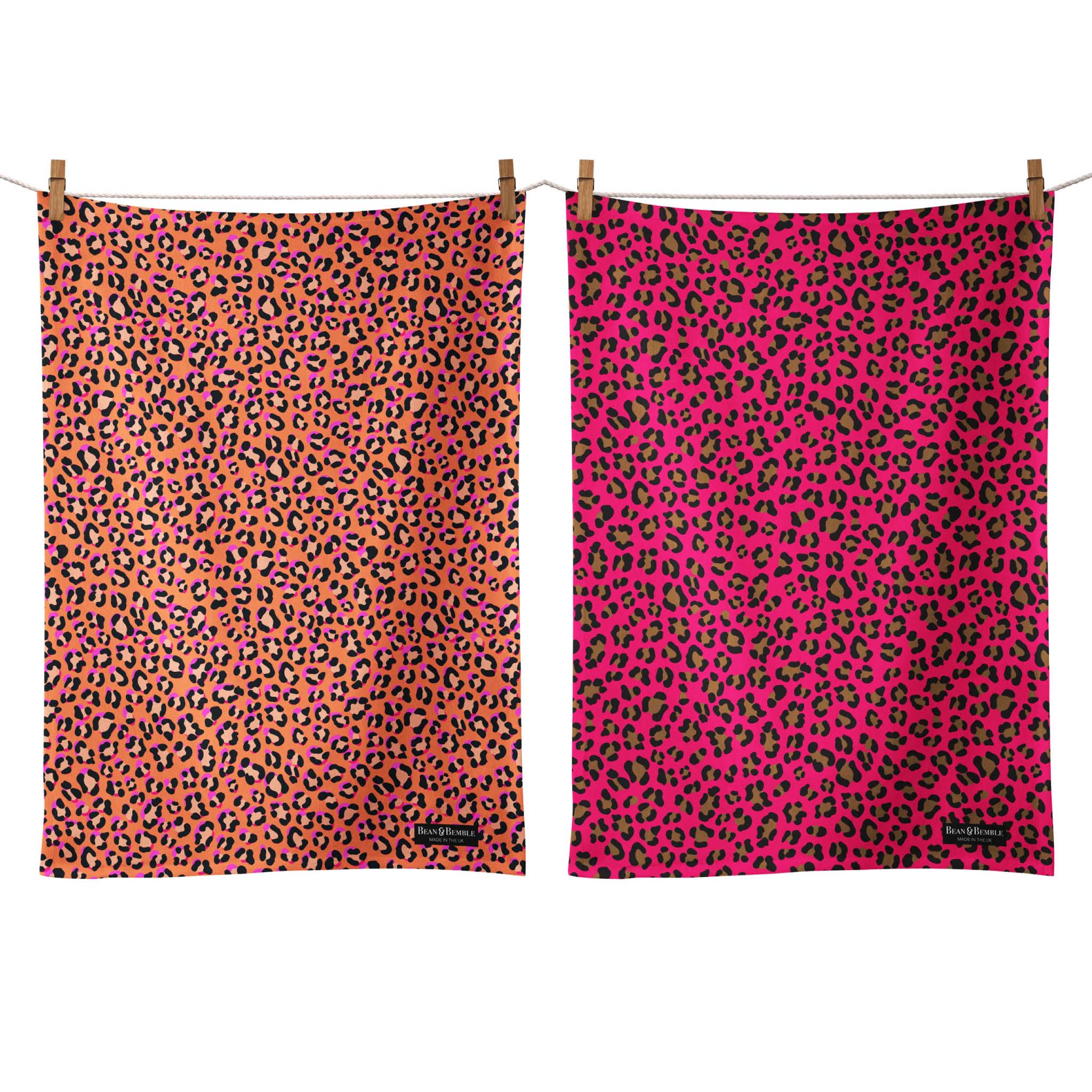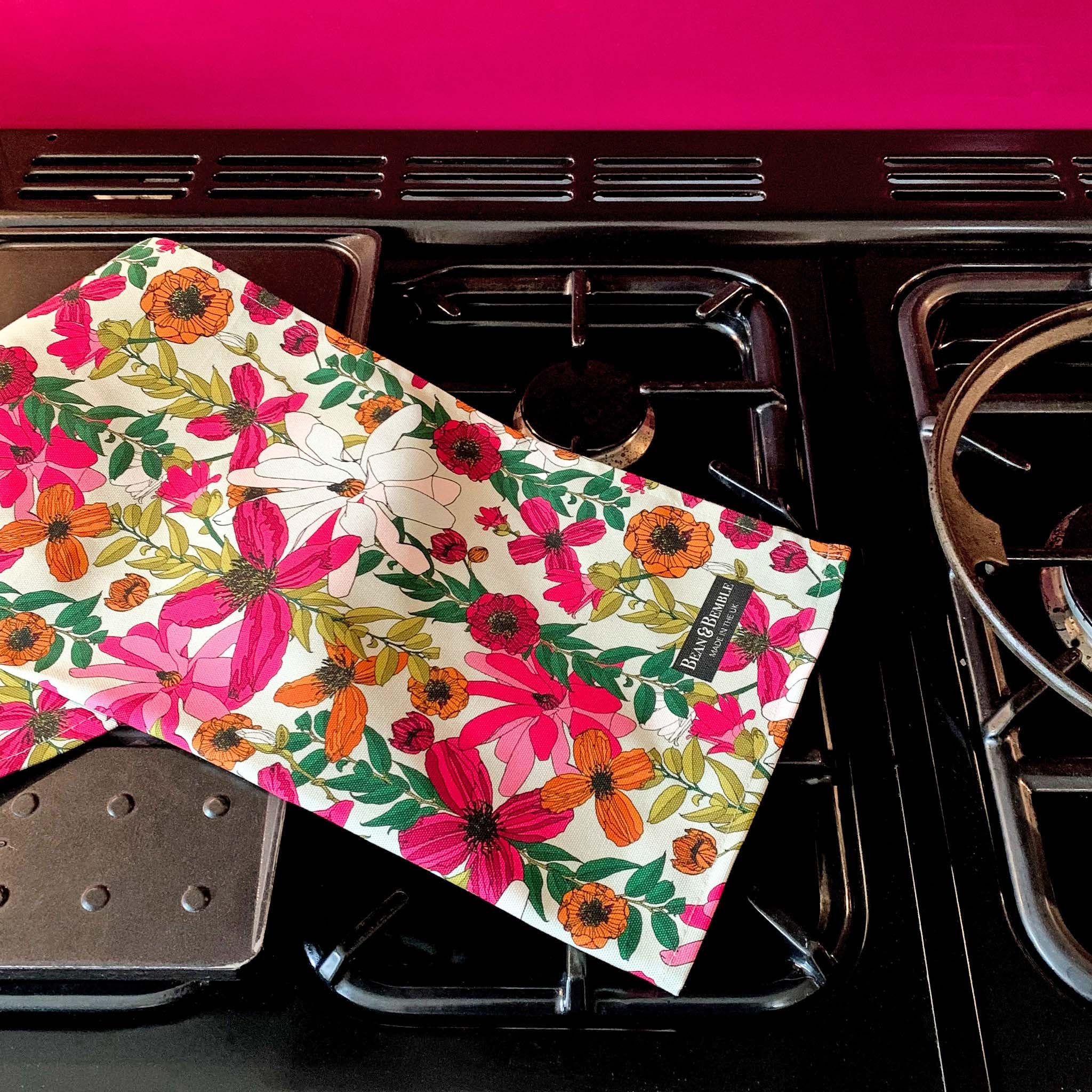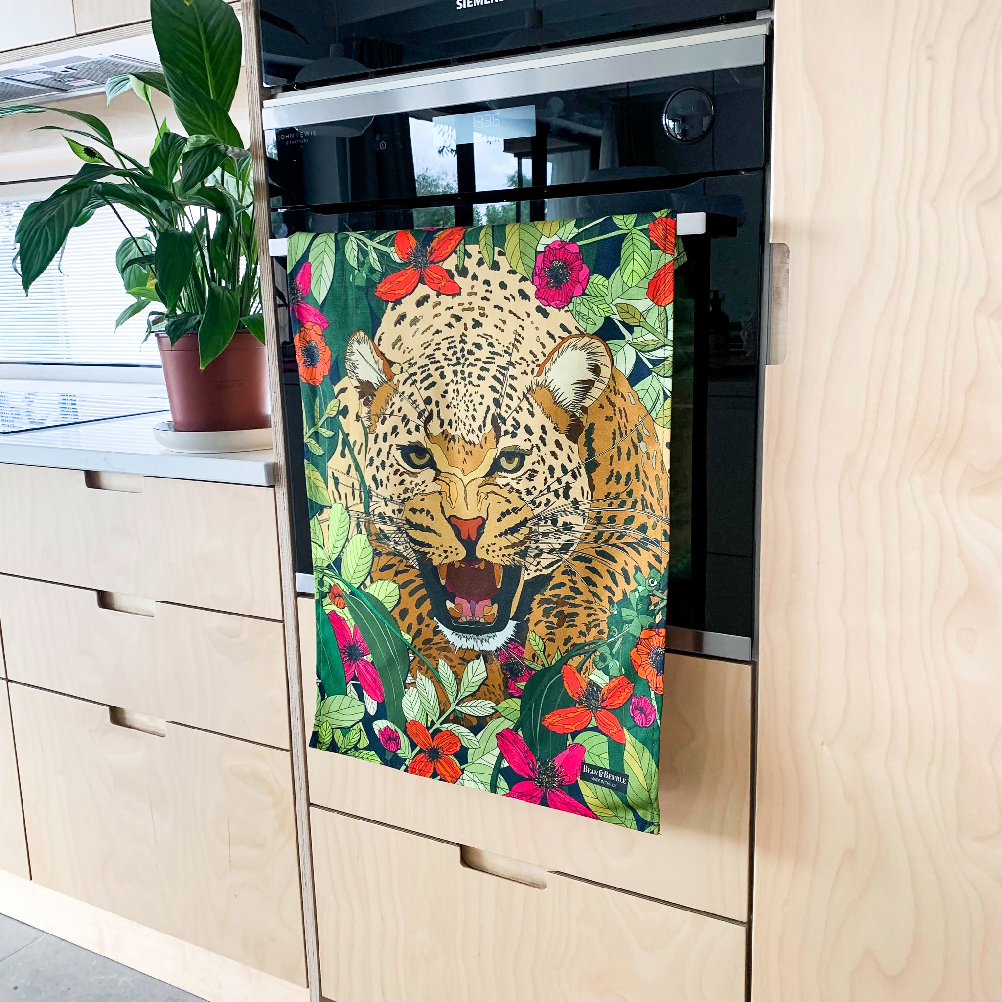 Brighten your kitchen with our decorative tea towels, featuring vibrant florals, bold leopard prints, destination designs, animals and more. Handmade in the UK from premium 300g organic half panama cotton, these luxurious tea towels combine style with practicality. Super absorbent and perfect for handling spills, they add colour and personality to your cooking space while offering exceptional quality and craftsmanship.