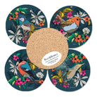 1 パックあたり 4 種類のコースター デザイン - ゴジュウカラ、コマドリ、ヒガラ、ウソ。