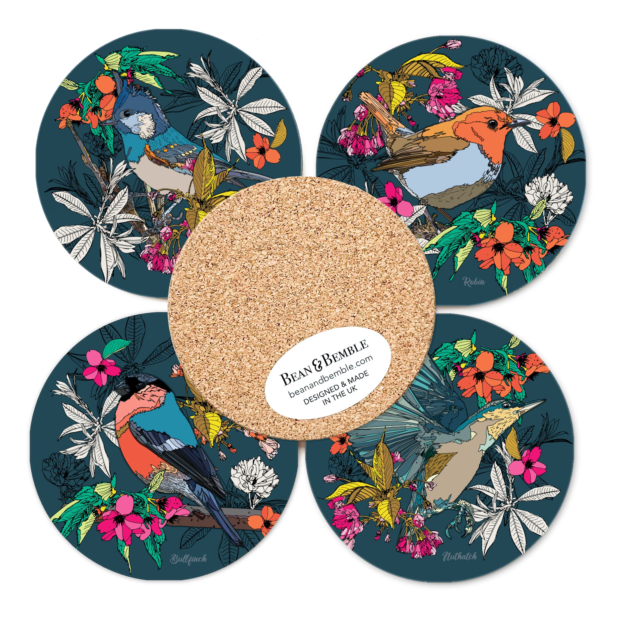 鳥のコースターセット 桜 ブリティッシュガーデン