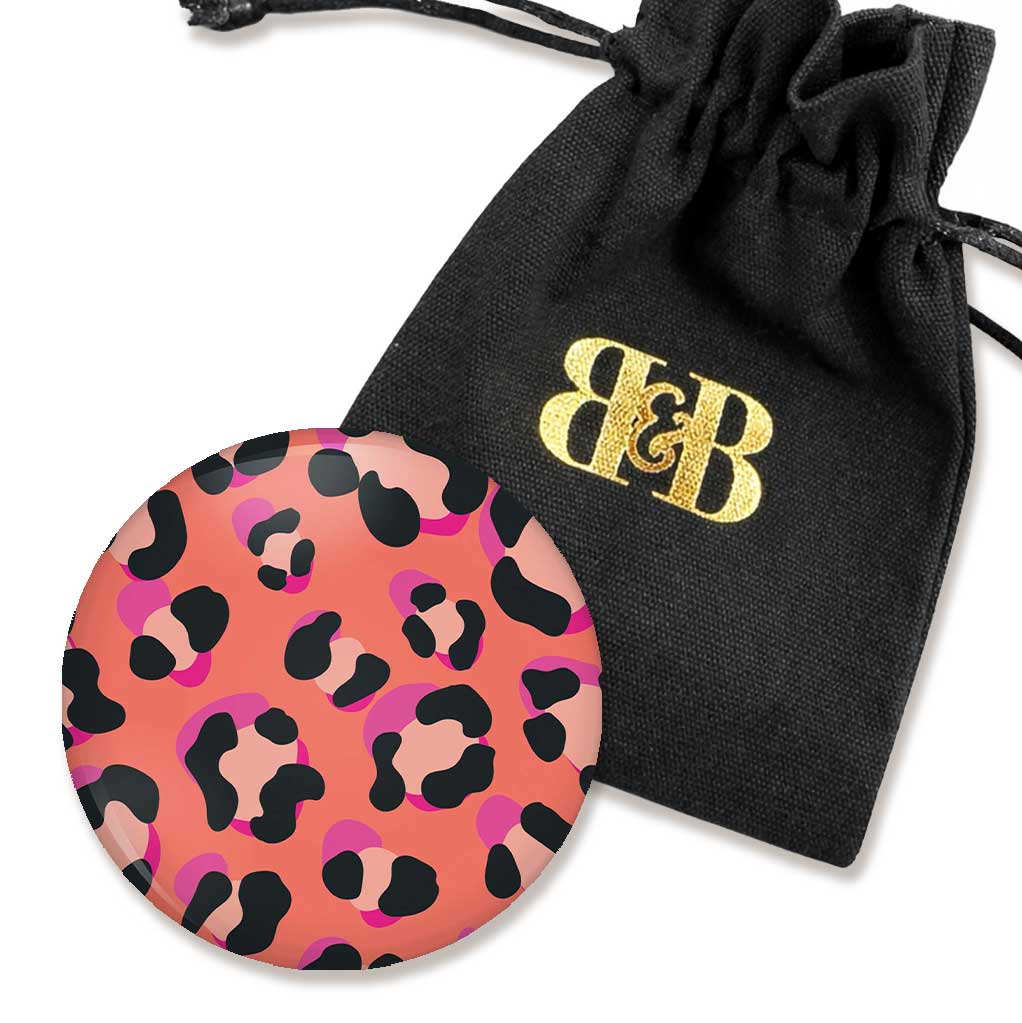 ハンドバッグミラー - ワイルドキャット - ヒョウ柄コーラル