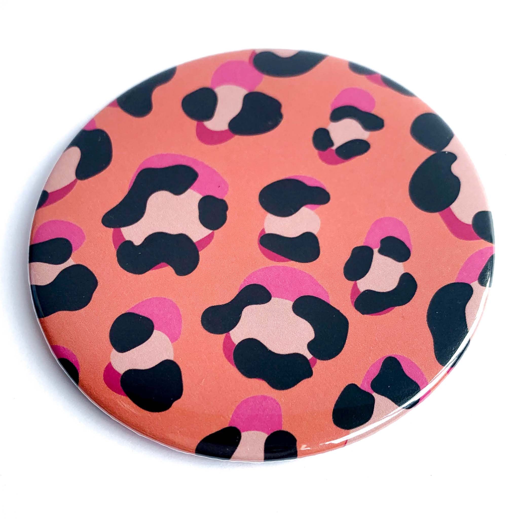素晴らしいワイルドキャットコーラルヒョウ柄が特徴のポケットミラーは、一般的なコンパクトミラーよりも大きいですが、ポケット、ハンドバッグ、化粧ポーチに収まる完璧なサイズで、ご友人やご自身へのプレゼントに最適です。